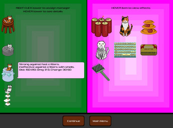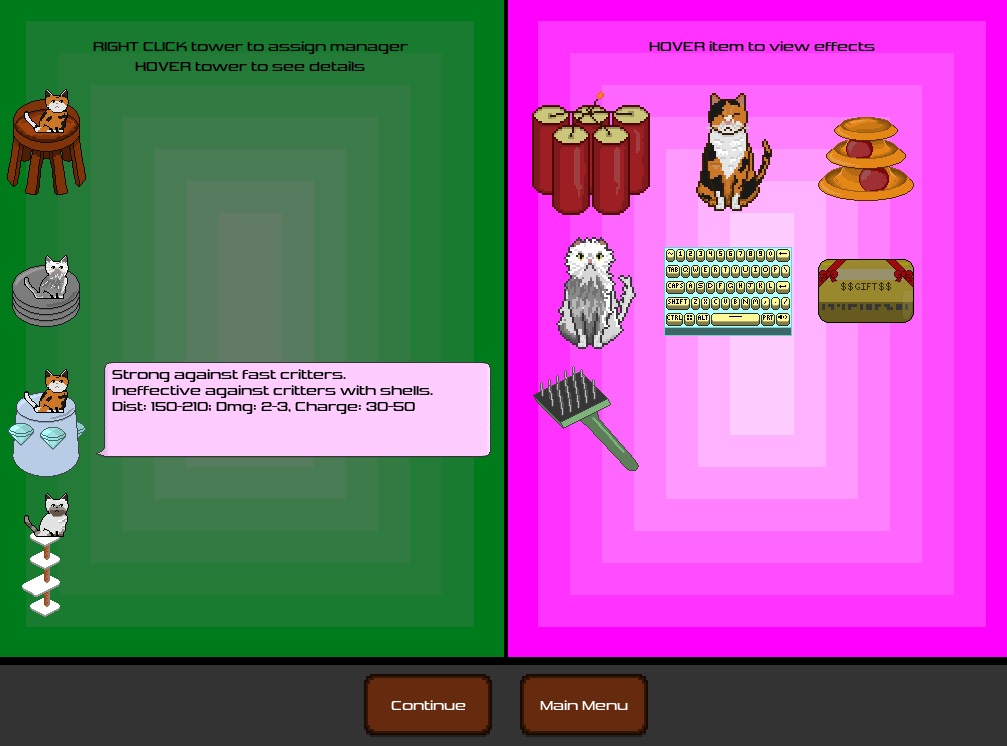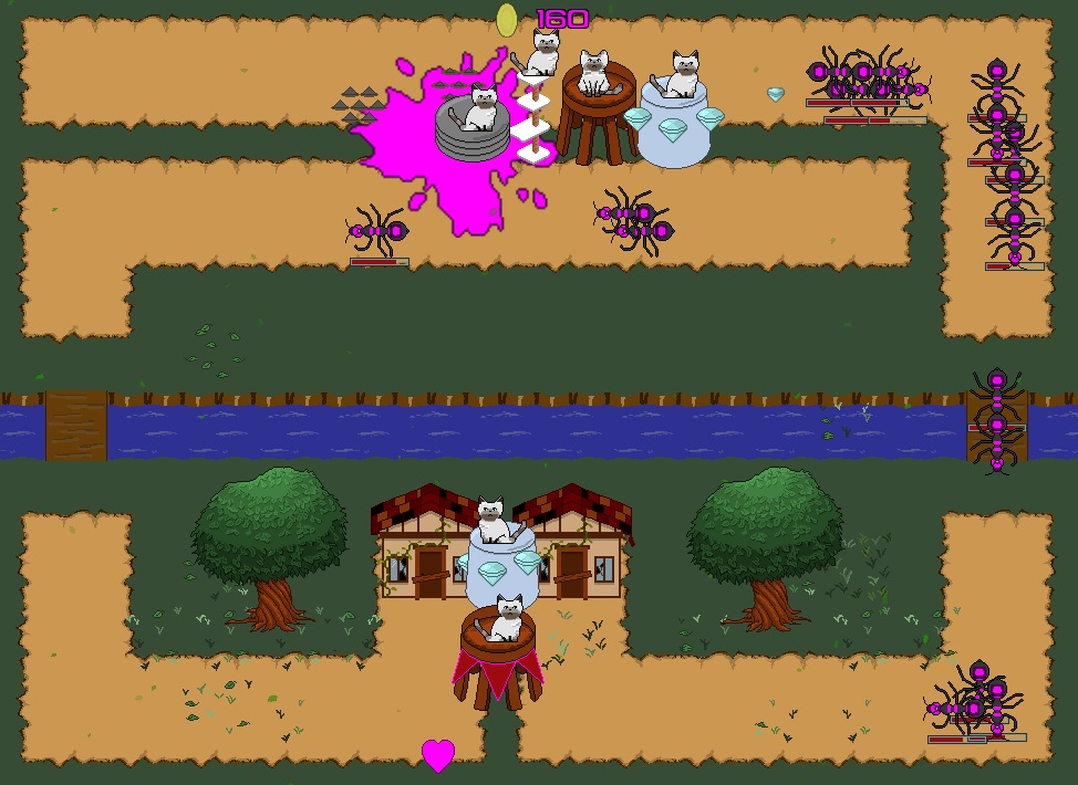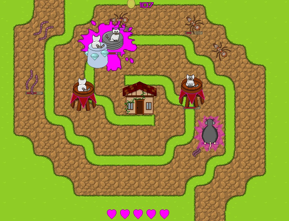Pest Control is a short cat-themed tower defense game. Construct towers, collect stacking buffs, and staff new cat-managers to help you repel nasty critters from your home!